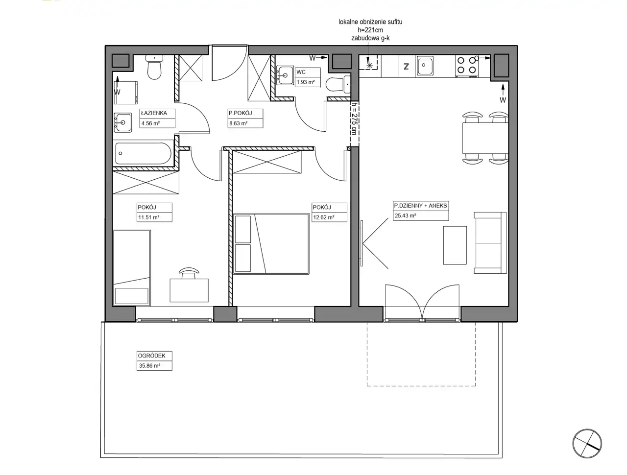 - Charakterystyka mieszkania 64.68 m2, 3 pokoje