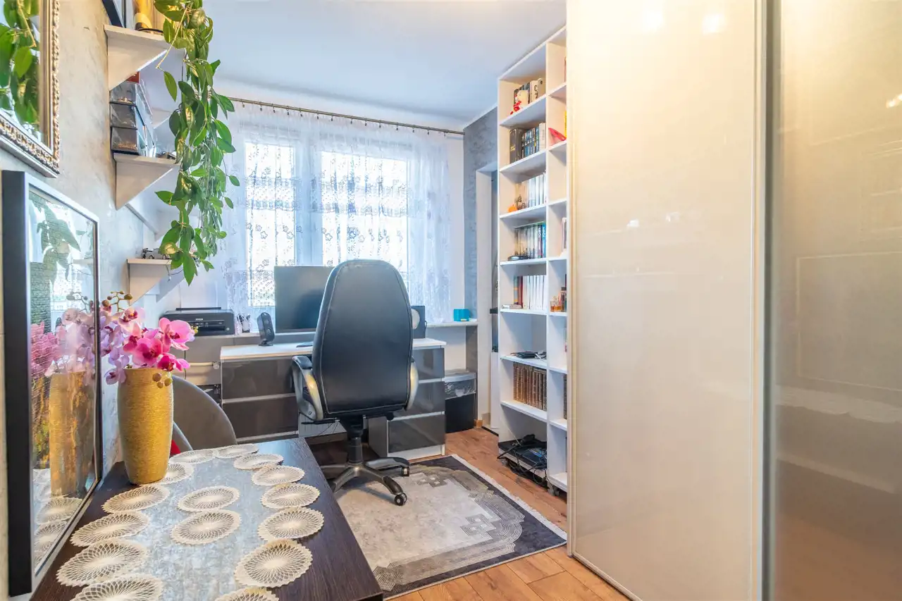 Mieszkanie - jasne, przestronne położone na 4 piętrze w 11-piętrowym bloku z windą. Największym atutem mieszkania jest niewątpliwie funkcjonalny dwustronny układ w pełnym rozkładzie oraz dodatkowe pomieszczenia które mogą pełnić funkcje garderoby lub schowka. W mieszkaniu przeprowadzono generalny remont. Wymieniono drzwi, okna, podłogi, grzejniki. Wyremontowano łazienkę oraz toaletę. Zrobiono nową kuchnie pod wymiar oraz w każdej sypialni i korytarzu wykonano szafy na wymiar. W lokalu została wymieniona elektryka oraz założono klimatyzację.
