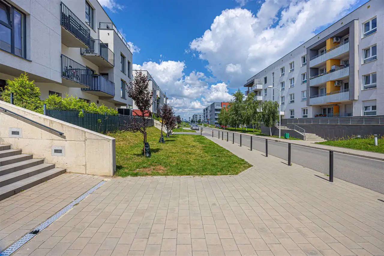 Atrakcyjny widok na zieleń oraz przyjemna, spokojna okolica. Bezpośredni dostęp do pełnej infrastruktury miejskiej.