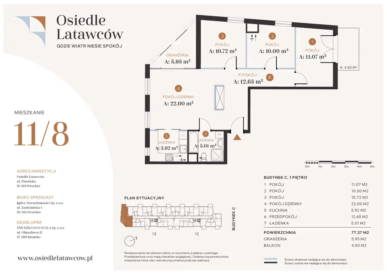 Lokalizacja przy ul. Żmudzkiej zapewnia szybki dostęp do kluczowych punktów miasta – w pobliżu znajdują się sklepy, szkoły, przedszkola, punkty usługowe, a także tereny rekreacyjne i sportowe. Bliskość obwodnicy AOW i dobrze rozwinięta komunikacja miejska gwarantują sprawne połączenie z centrum i innymi częściami Wrocławia.