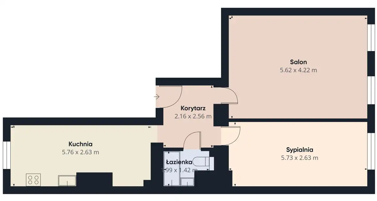 - Charakterystyka mieszkania 62.32 m2, 2 pokoje