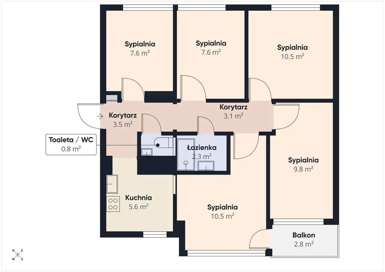 - Charakterystyka mieszkania 64.95 m2, 5 pokoi