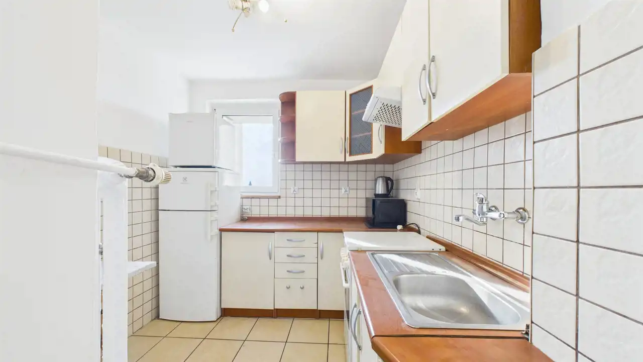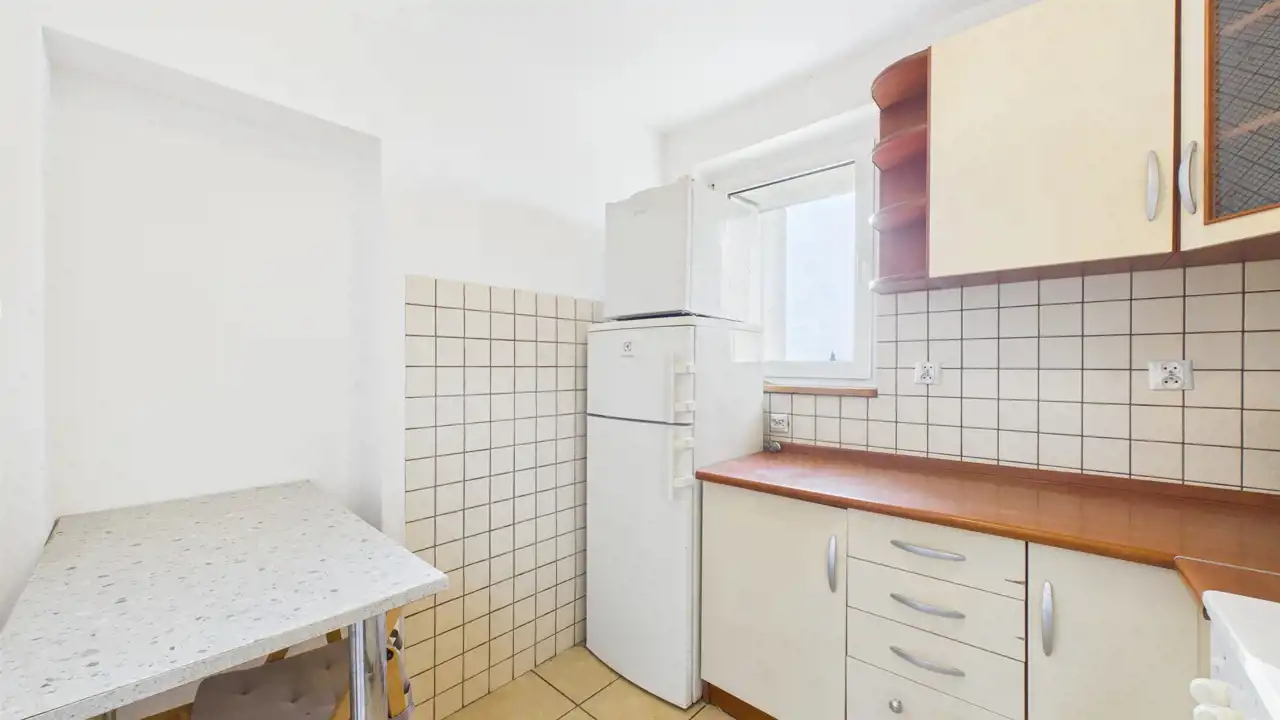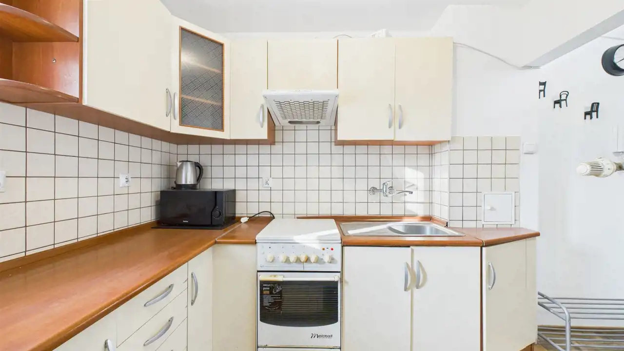 osobna, jasna kuchnia z oknem, w pełni wyposażona w sprzęt AGD