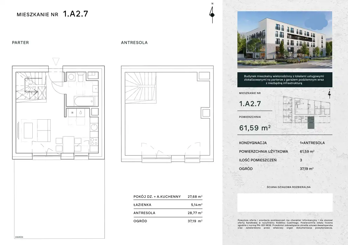 - Charakterystyka mieszkania 61.59 m2, 2 pokoje