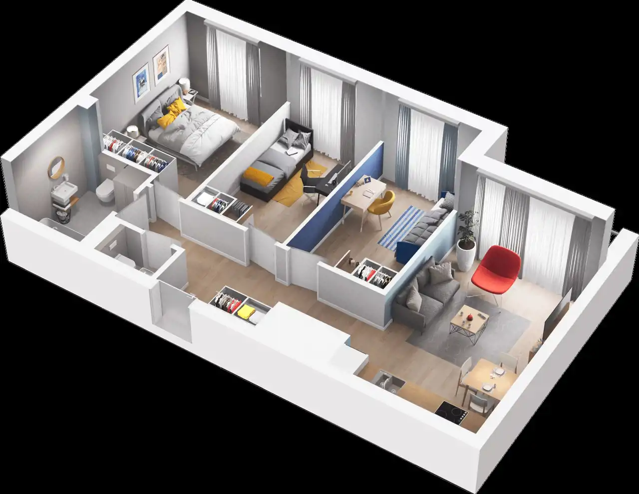 - Trzy Ustawne Sypialnie (10,90 m², 10,27 m², 10,27 m²) – idealne jako pokoje dla dzieci, sypialnia rodziców i/lub gabinet.