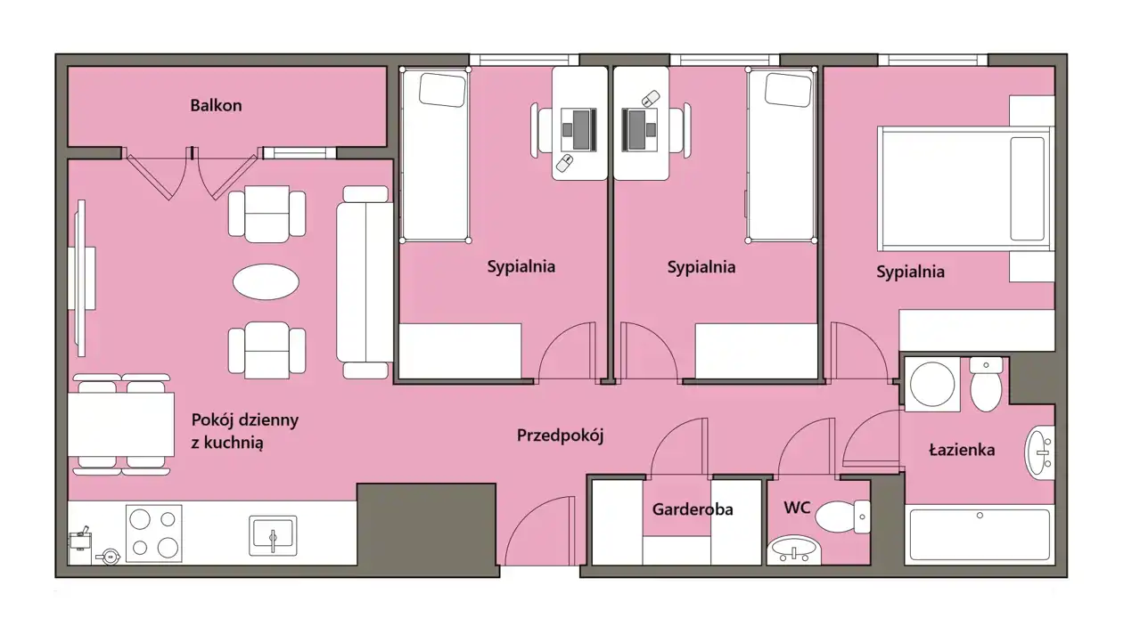 - Charakterystyka mieszkania 69.5 m2, 4 pokoje