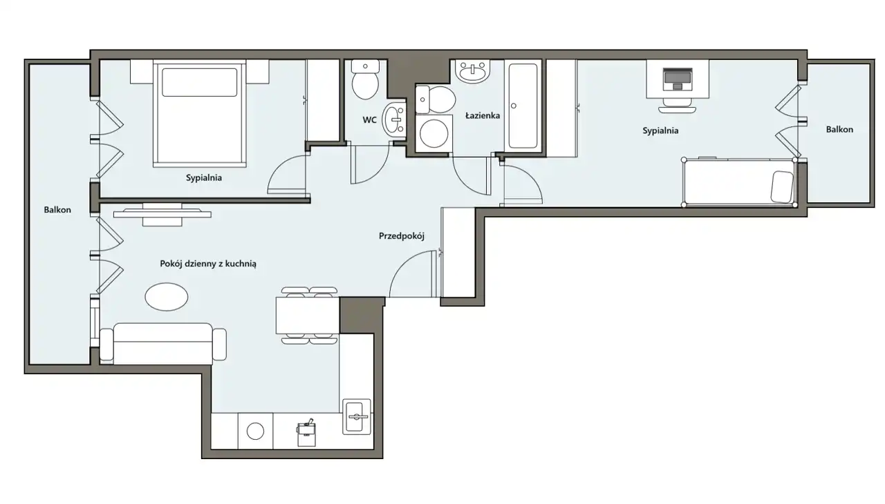 - Charakterystyka mieszkania 61.31 m2, 3 pokoje