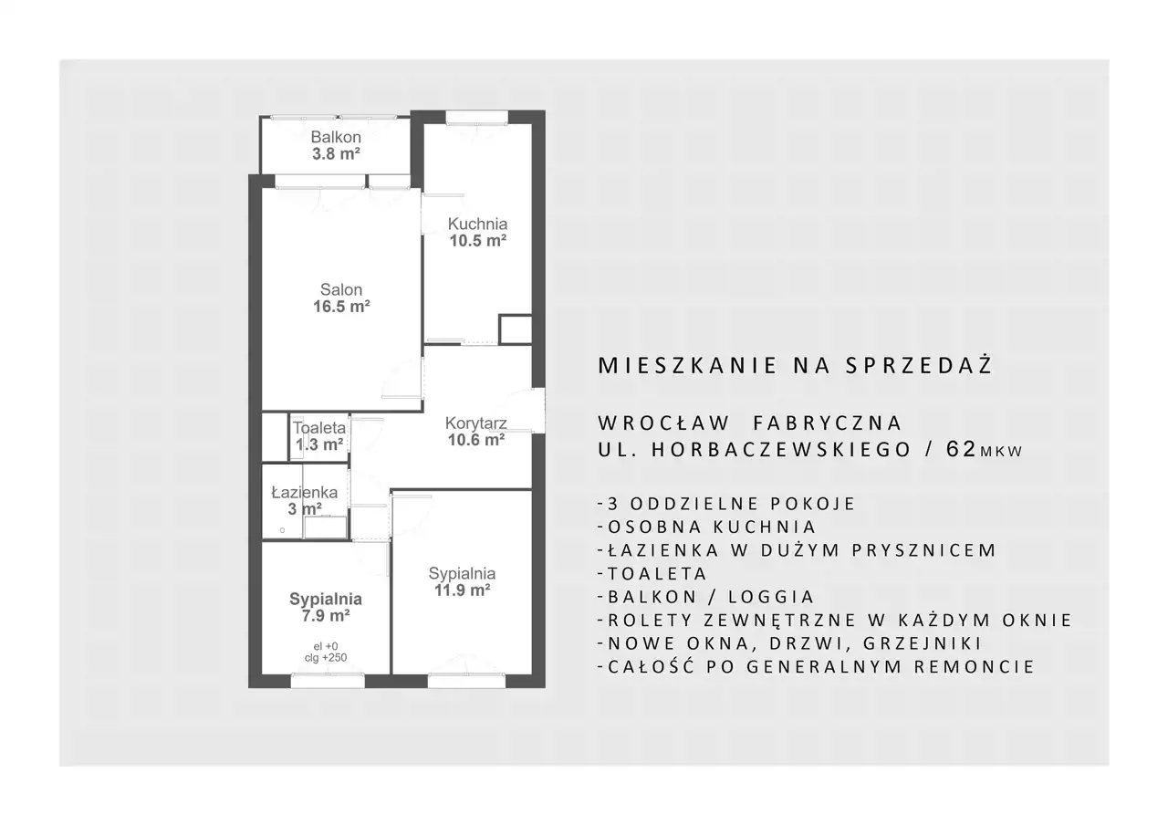 Polecam ofertę 3 pokojowego mieszkania przy ul. Horbaczewskiego