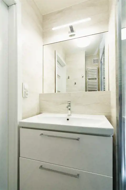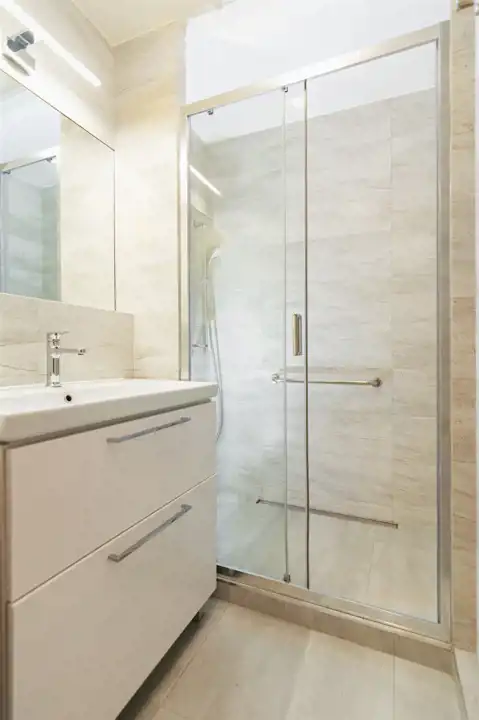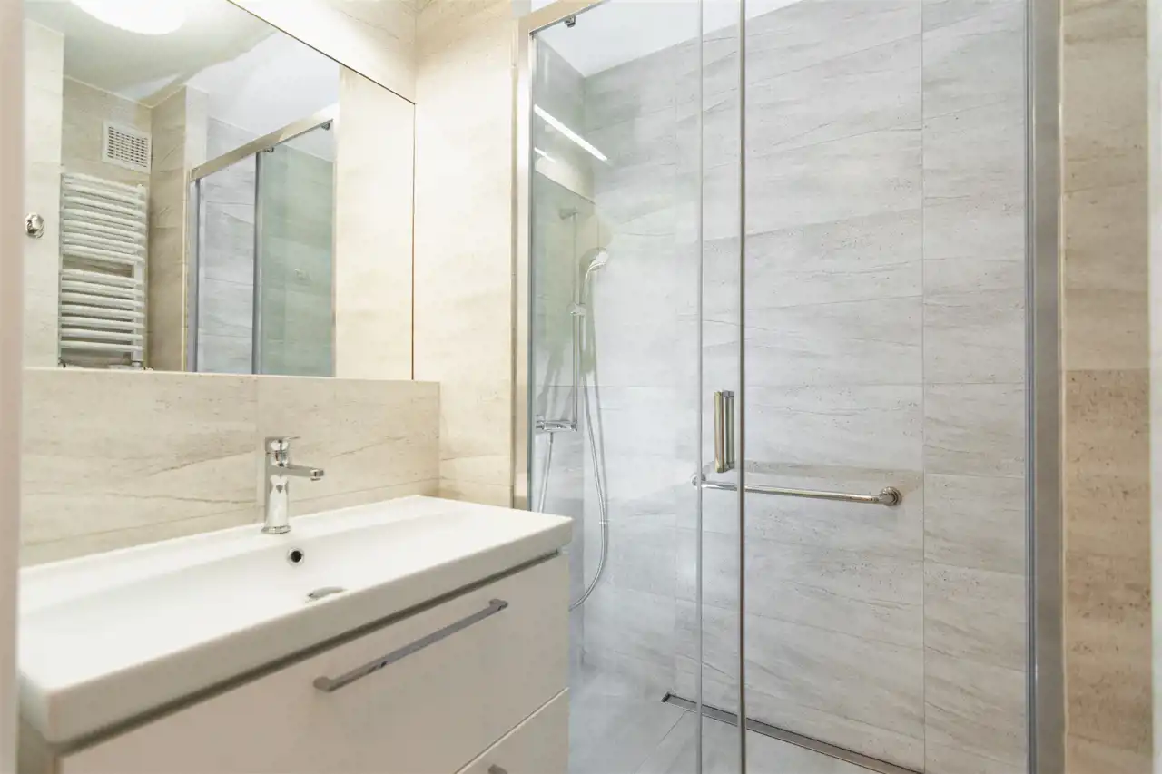 - łazienka z dużą i bardzo wygodną kabina prysznicową