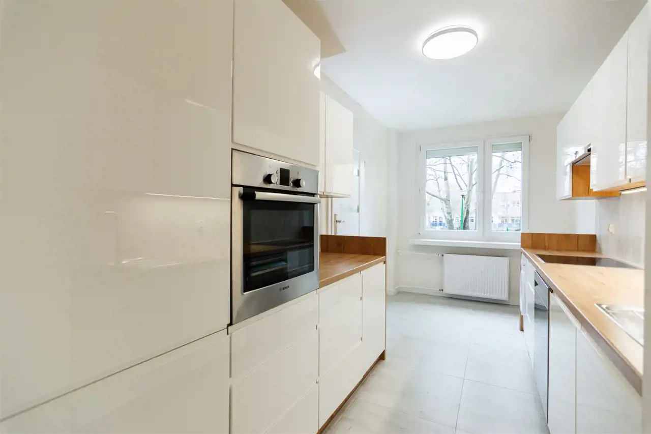 - niezależna jasna kuchnia - nowe meble, nowe AGD, z okna widok na zielony osiedlowy skwer,