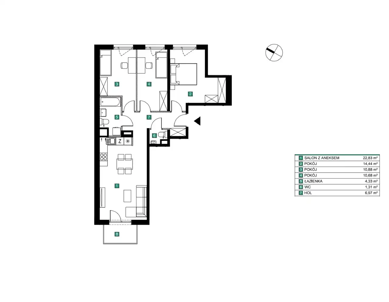 - Charakterystyka mieszkania 71.4 m2, 4 pokoje