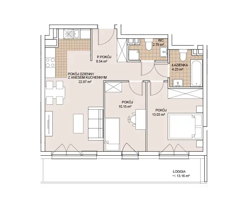 - Charakterystyka mieszkania 61.61 m2, 3 pokoje