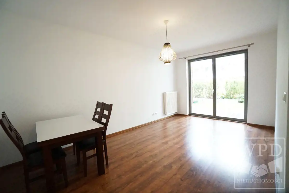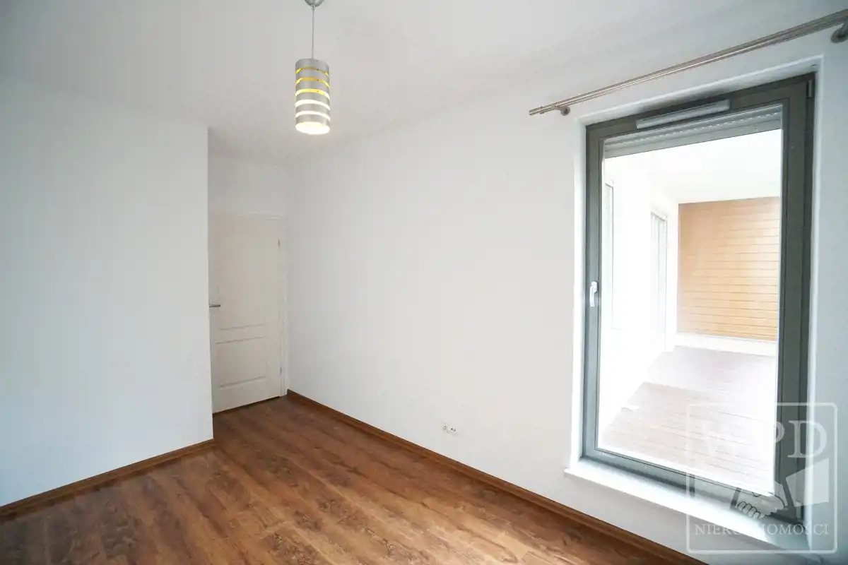 Apartament składa się z salonu, osobnej kuchni, sypialni, łazienki oraz ogrodu.