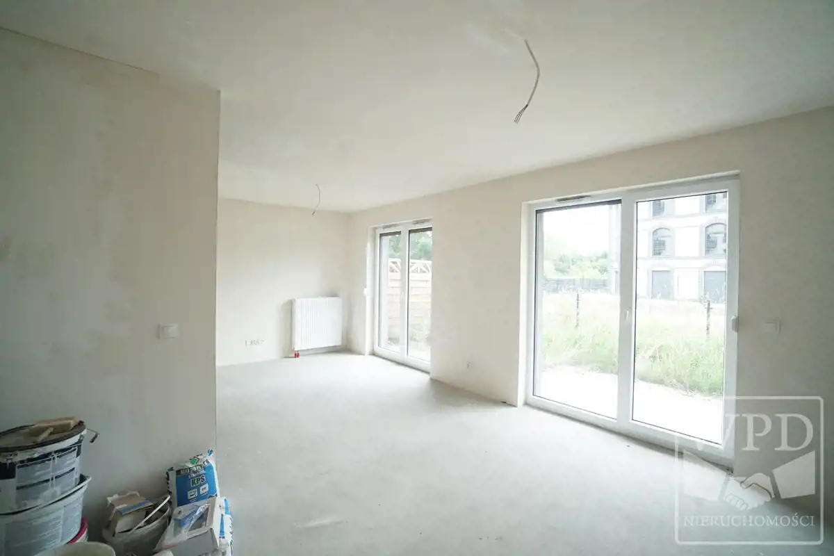 Składa się on z salonu z jadalnią, kuchni i wyjścia na ogród.