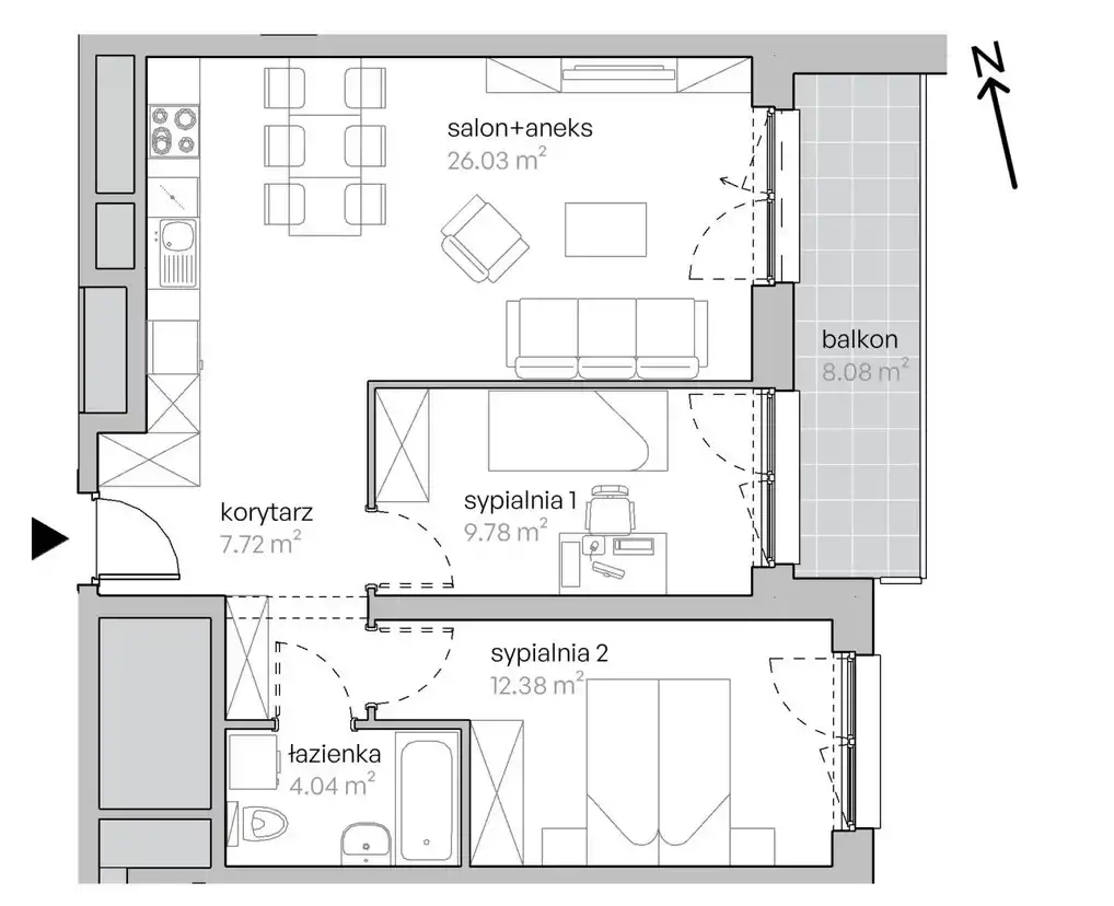 sypialnia 1: 9,78 m²