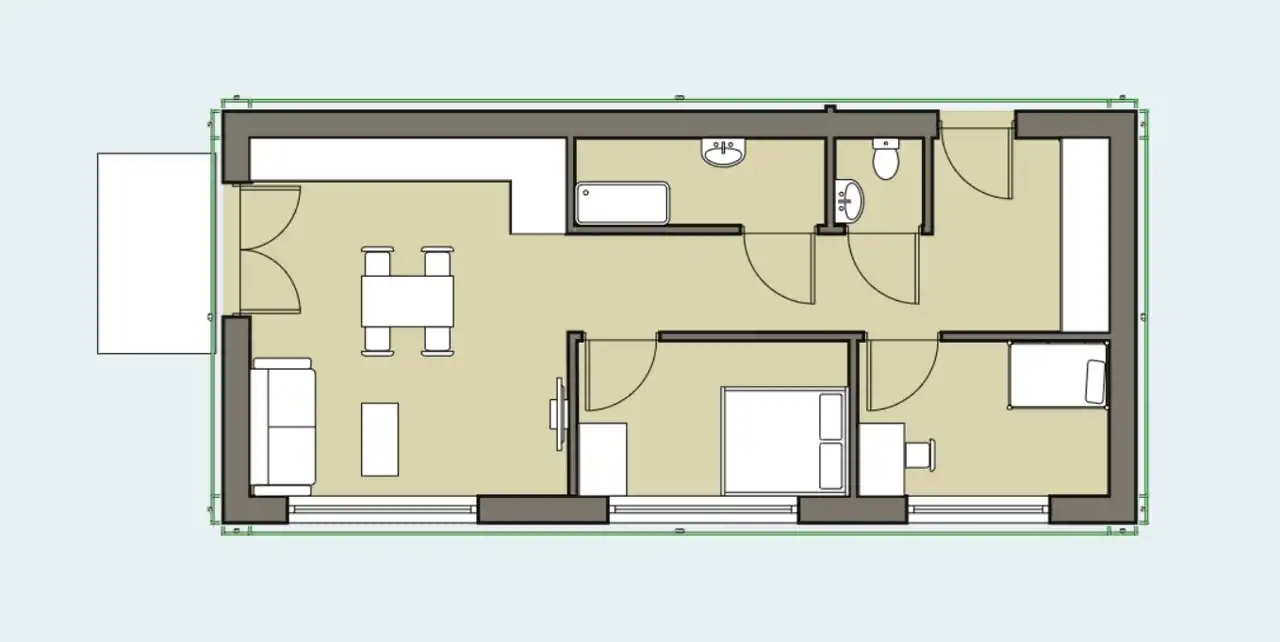 - pokoju dziennego z aneksem kuchennym