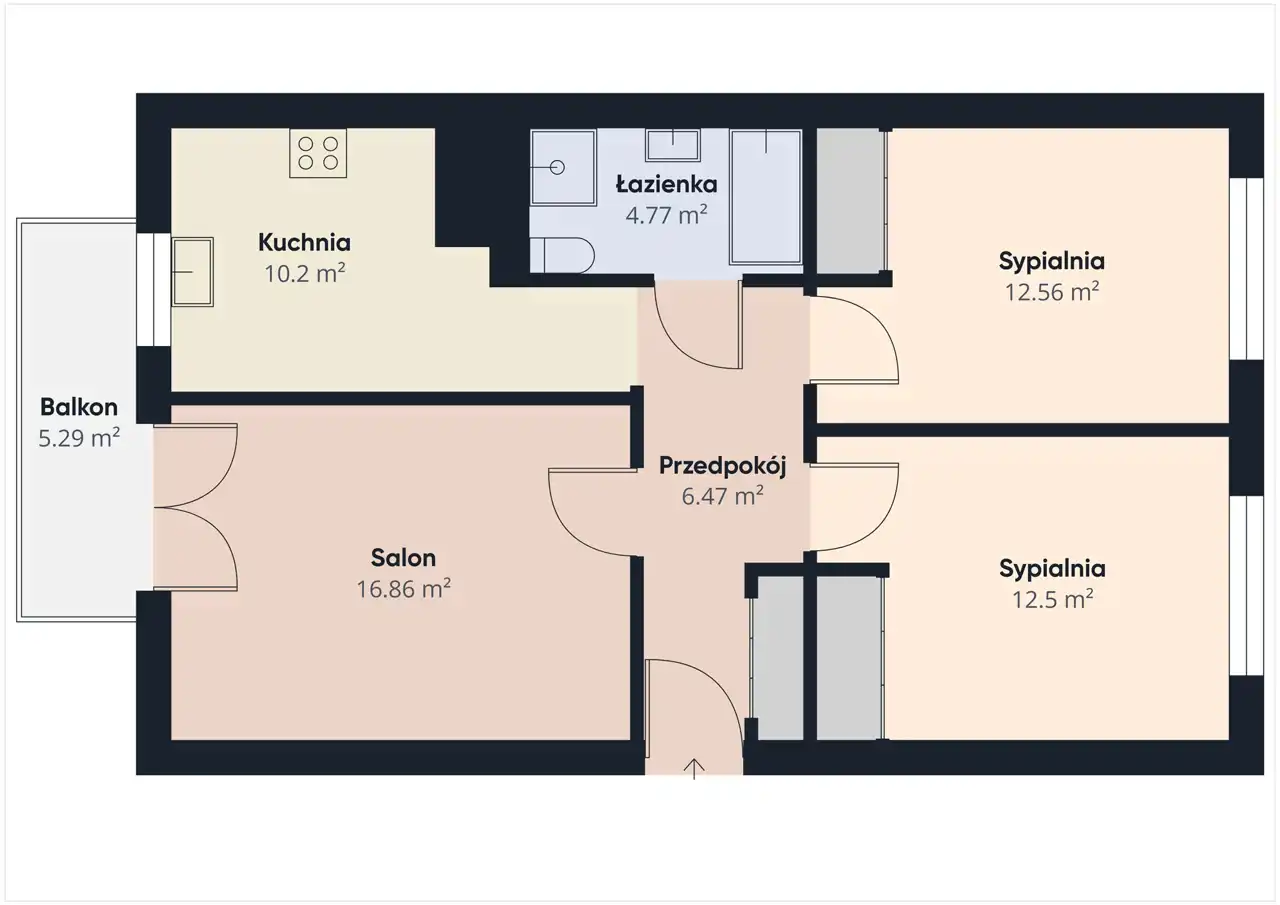 - Charakterystyka mieszkania 67.5 m2, 3 pokoje