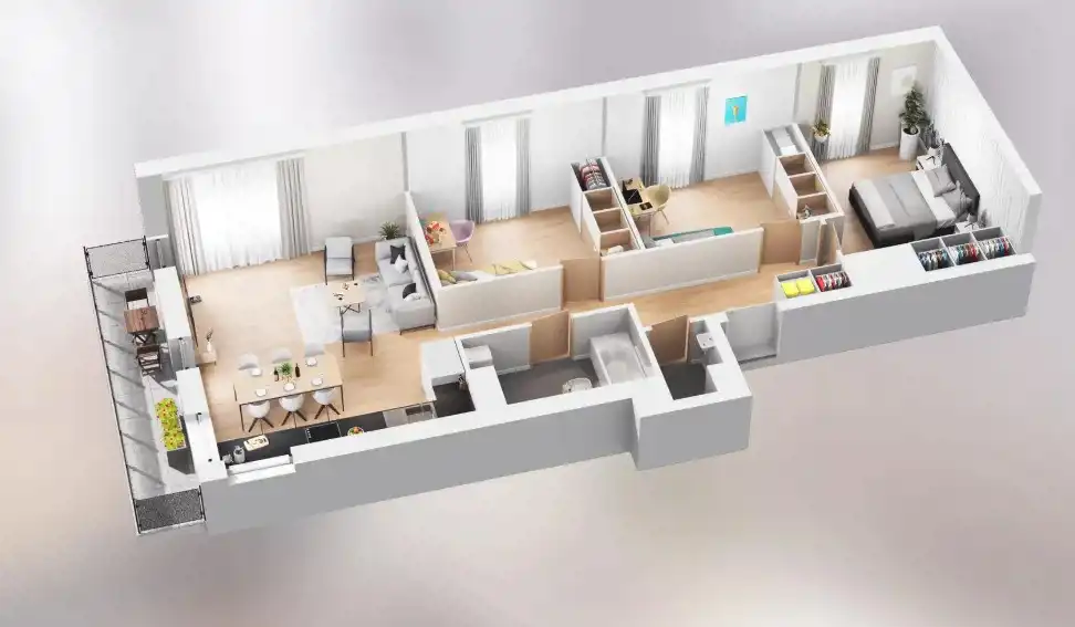 - Charakterystyka mieszkania 77.1 m2, 4 pokoje