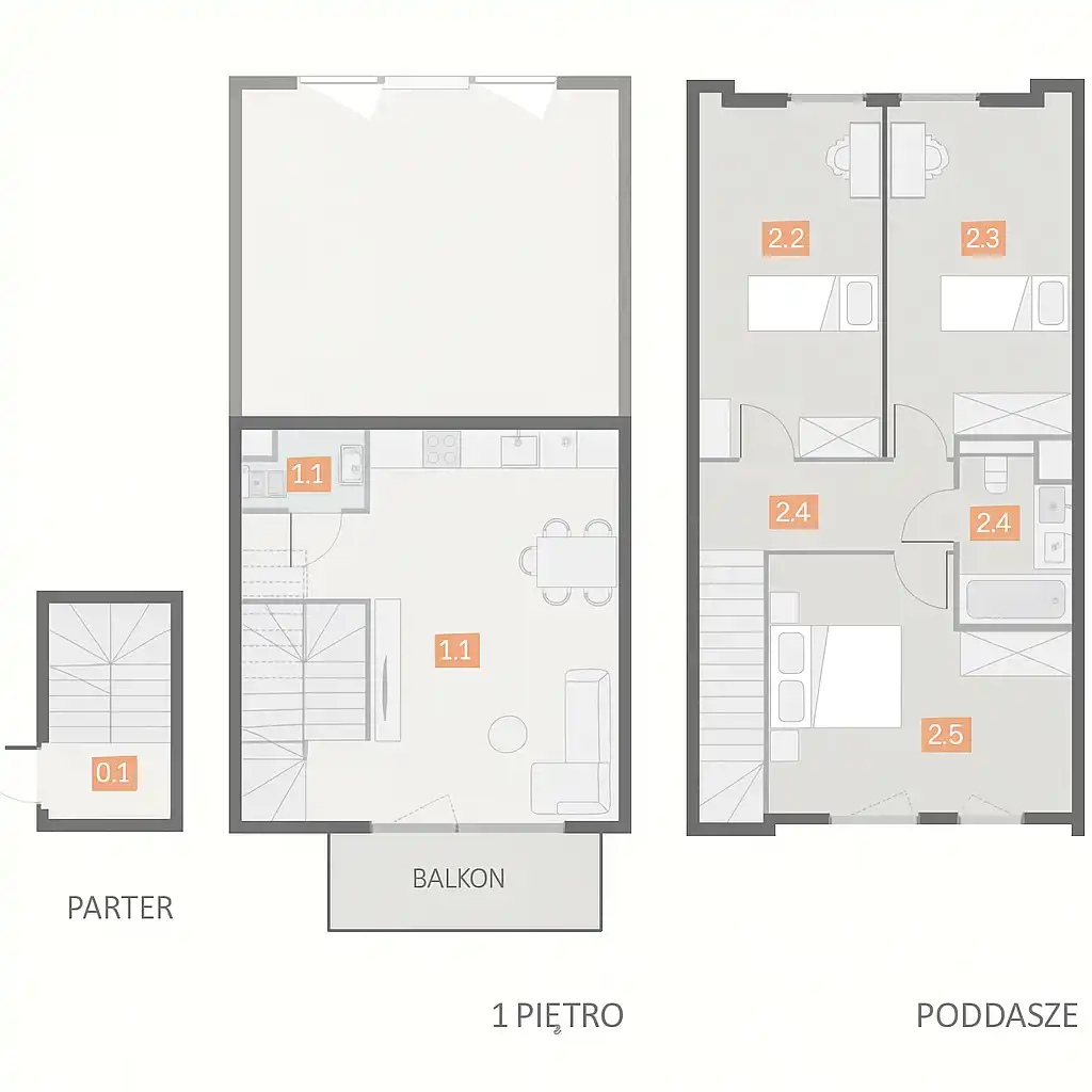 - Rozkład mieszkania 1p piętro