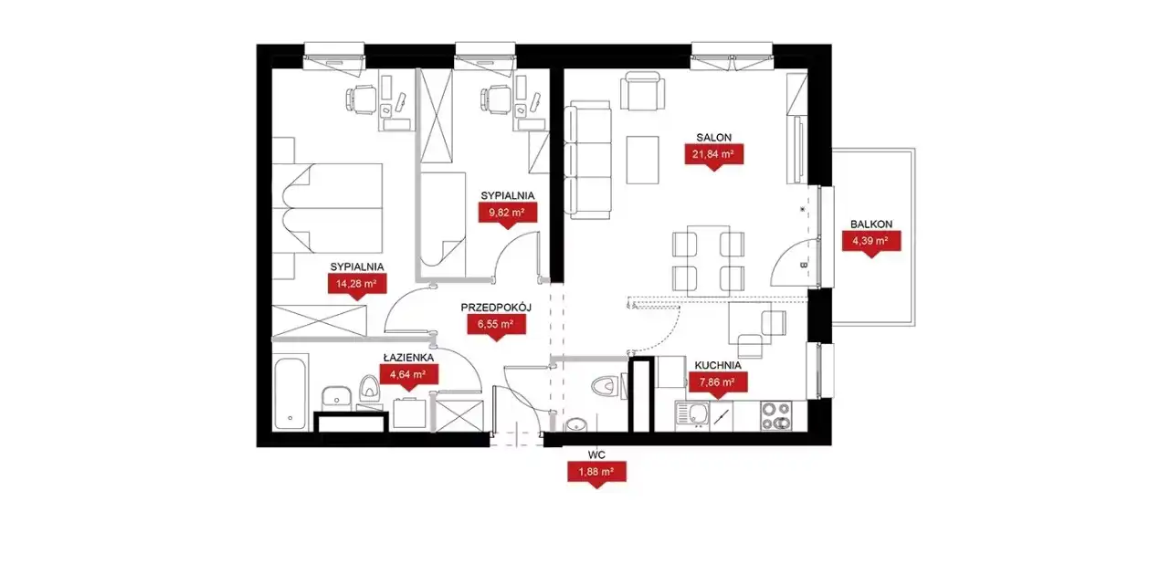 - Charakterystyka mieszkania 66.87 m2, 3 pokoje