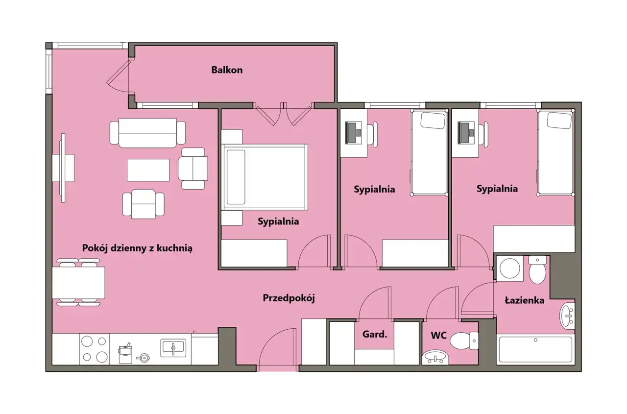 - Charakterystyka mieszkania 77.12 m2, 4 pokoje