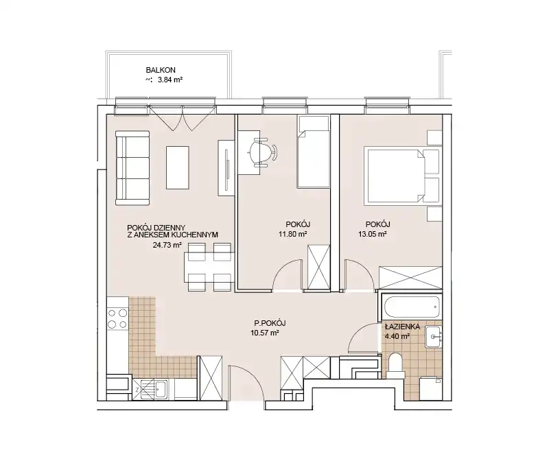 - Charakterystyka mieszkania 64.6 m2, 3 pokoje