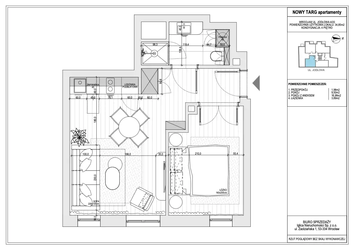 - Charakterystyka mieszkania 34.85 m2, 2 pokoje