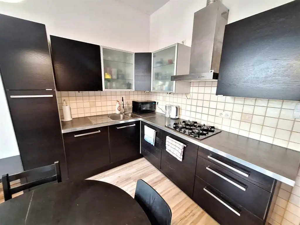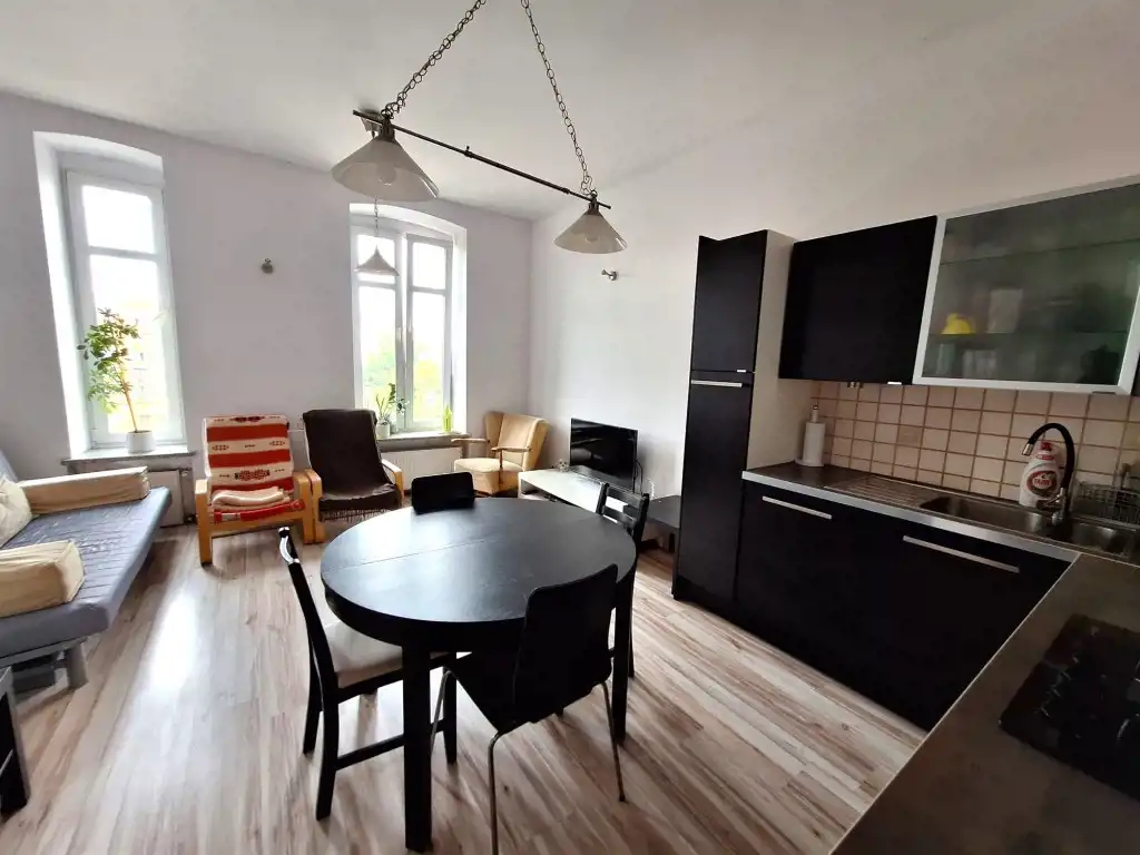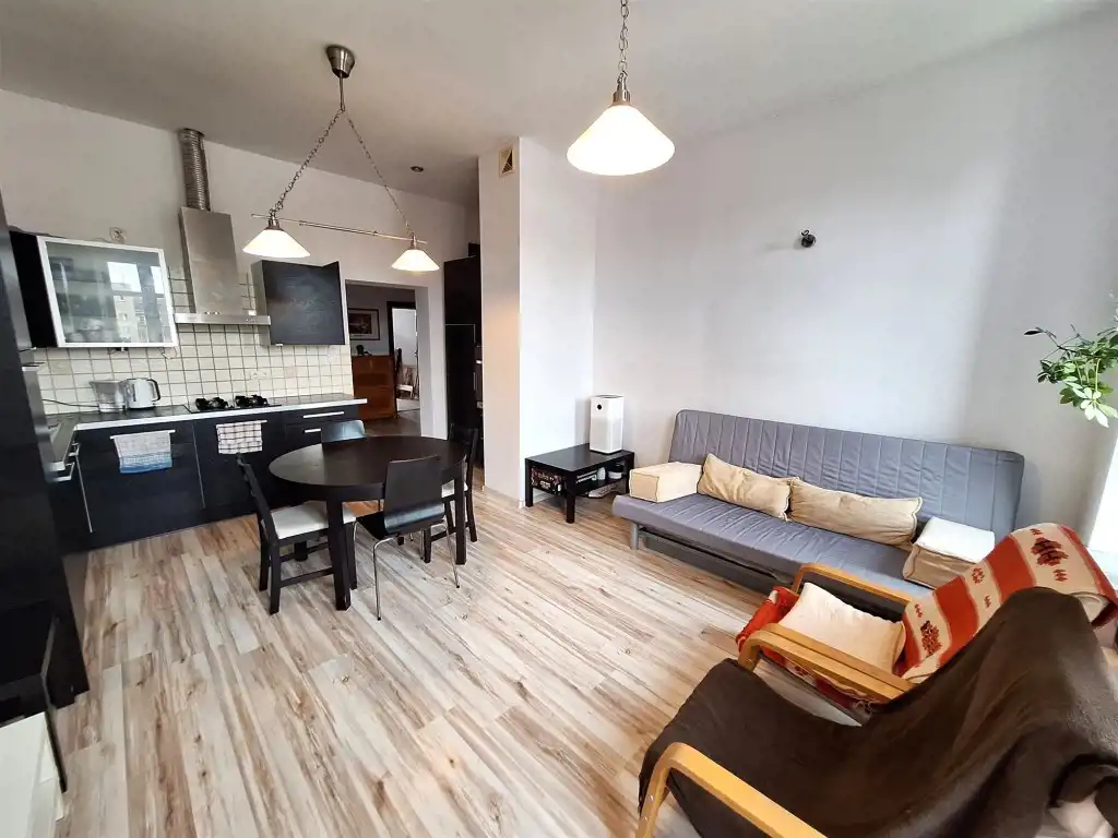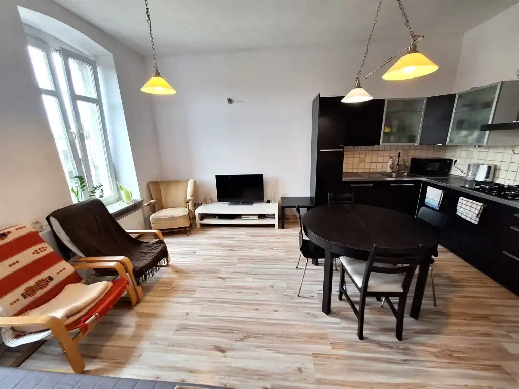 - salon połączony z umeblowaną i wyposażoną kuchnią