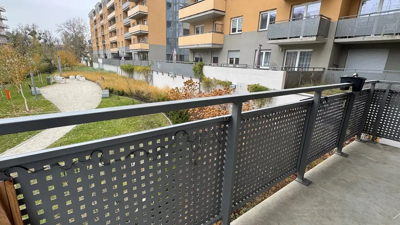 - Balkon z widokiem na zieleń, idealny na poranną kawę,