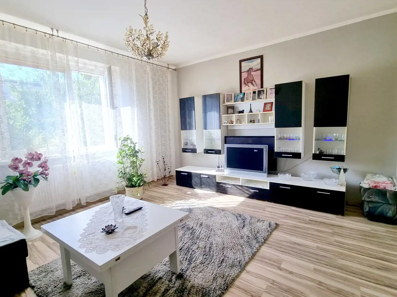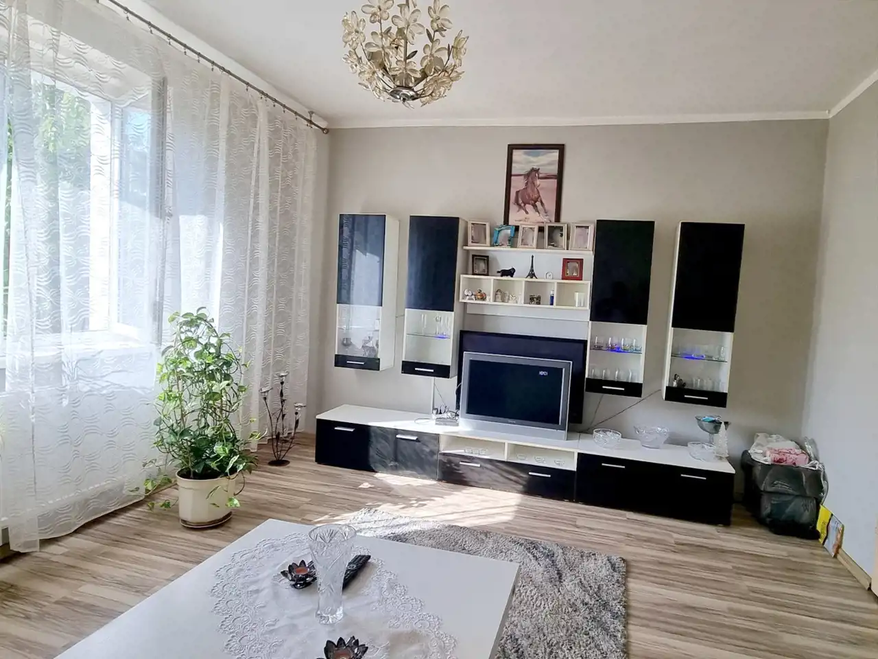 - przestronnego salonu (ok. 20 m2) wyposażone w kanapę, meblościankę, TV