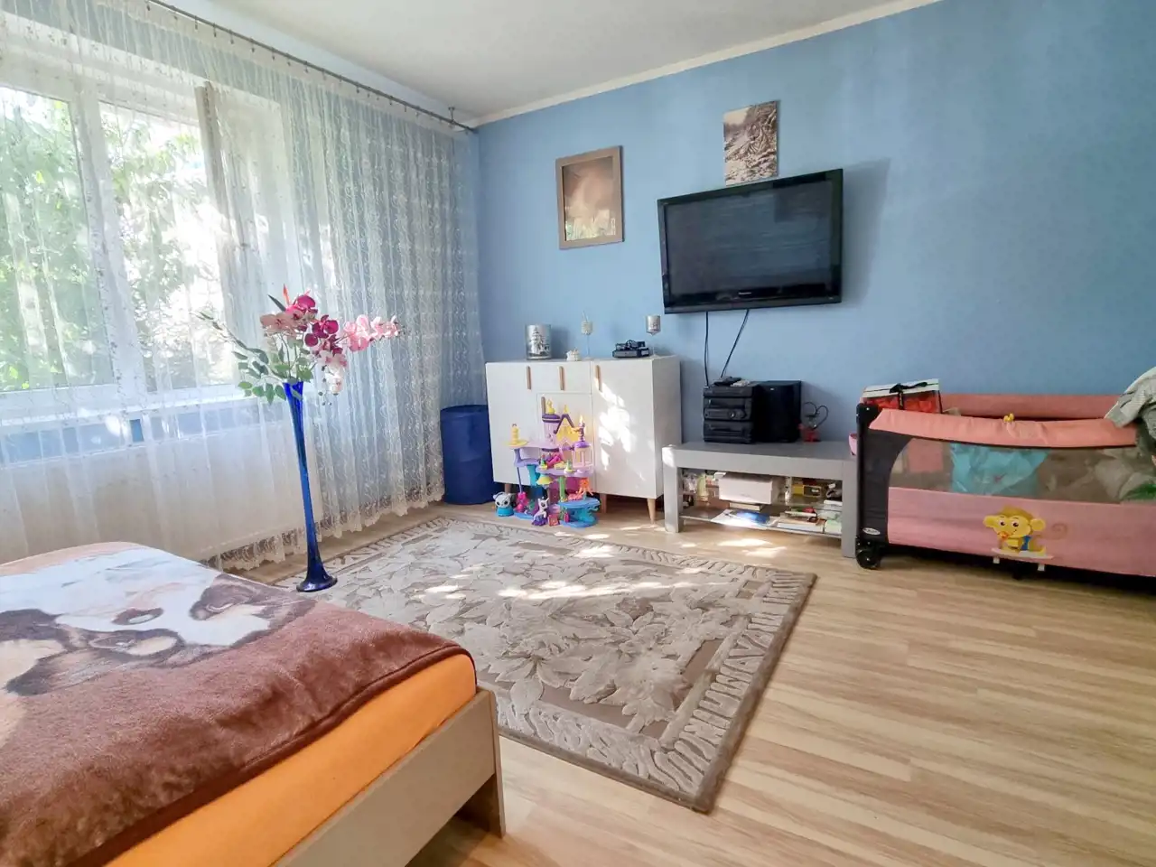 Podłogi w pokojach wykonane są z paneli drewnianych