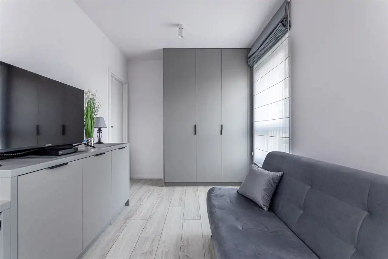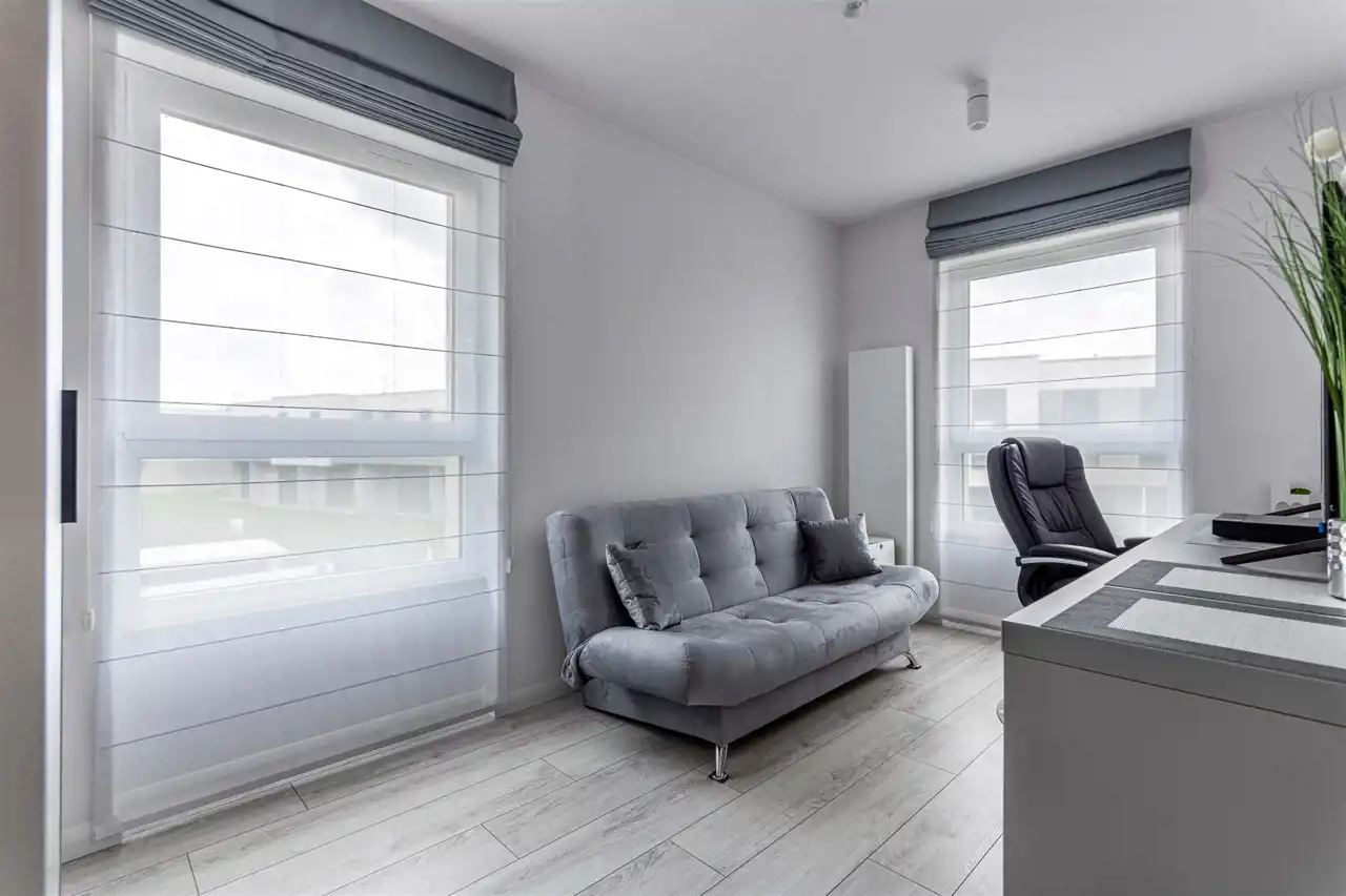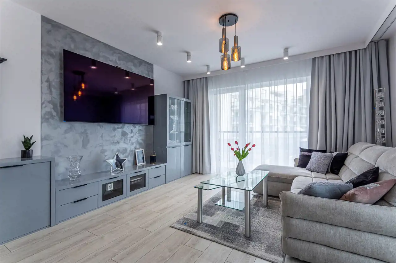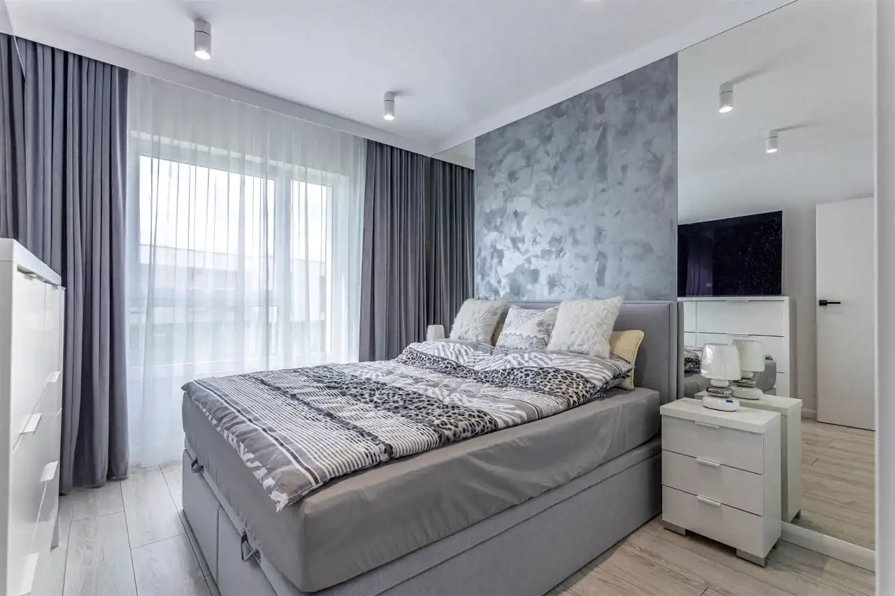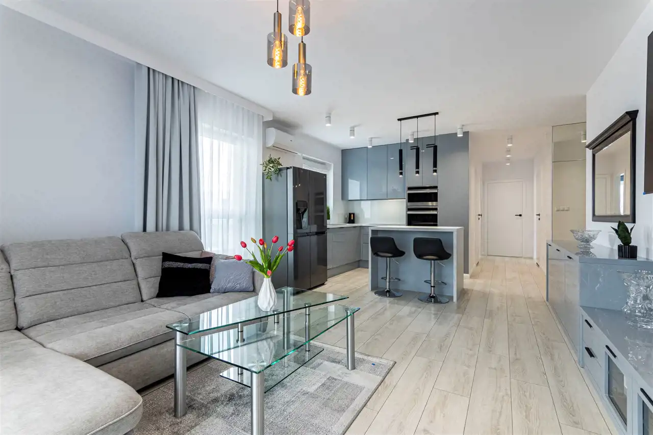 Mieszkanie jest starannie wykończone i w pełni wyposażone. Dobrze doświetlone ze względu na duże przeszklenia, okna skierowane na 3 kierunki (wschód, południe, zachód)