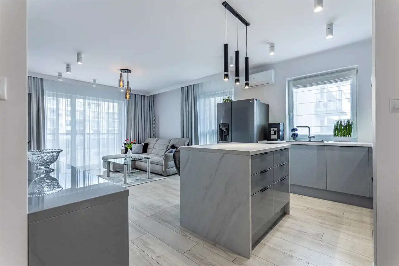 Dodatkowe informacje: Kuchnia z wyspą, wyposażona w sprzęty AGD w tym zmywarkę.