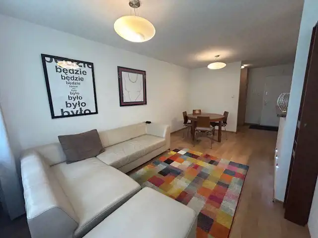 Mieszkanie wyposażone w zabudowę kuchenną na wymiar z AGD (piekarnik, płyta, okap, zmywarka, lodówka) i większość mebli wolnostojących, widocznych na zdjęciach. Łazienka z kabiną prysznicową oraz wanną, osobne wc, wyłożone kaflami. Na podłogach panele i kafle; w sypialni, gabinecie i małym pokoju podłoga z z drewna. W przedpokoju znajduję się zabudowana szafa na wymiar. Do mieszkania przynależy przestronny balkon z ładnym widokiem na zieleń oraz duża piwnica ( około 10 mkw). Wolne miejsca postojowe pod blokiem lub na placu ze szlabanem, który należy do spółdzielni.
