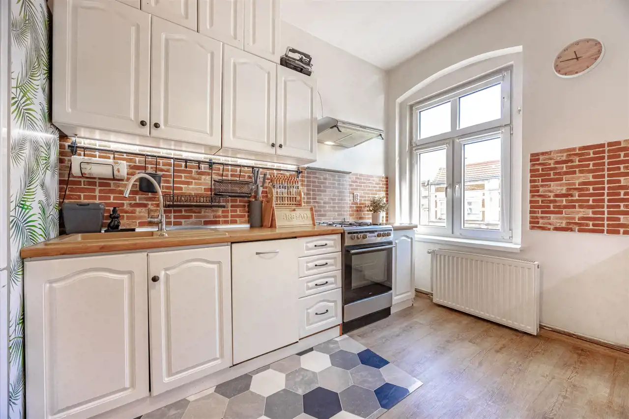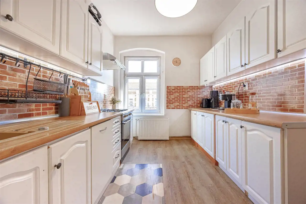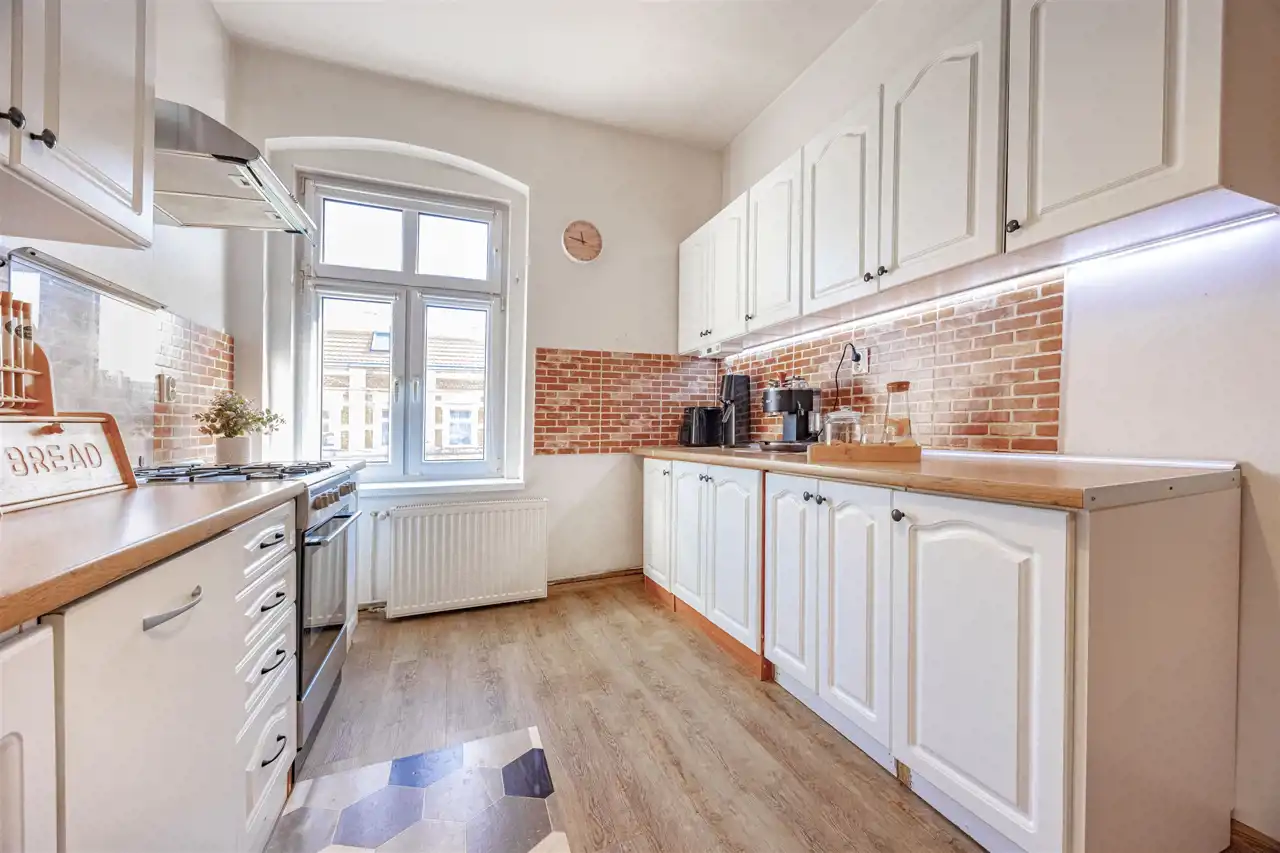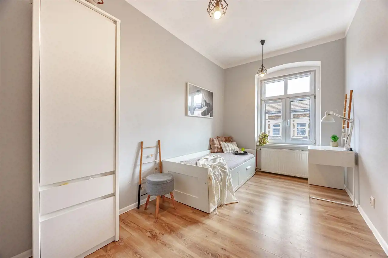 Mieszkanie o powierzchni 87,31 m2 znajduje się na czwartym piętrze kamienicy, jest dwustronne i jasne. Prężnie działająca współnota, spokojne i nowoczesne sąsiedztwo. Do mieszkania przynależy piwnica o powierzchni 9,05 m2, która jest uwzględniona w księdze wieczystej.