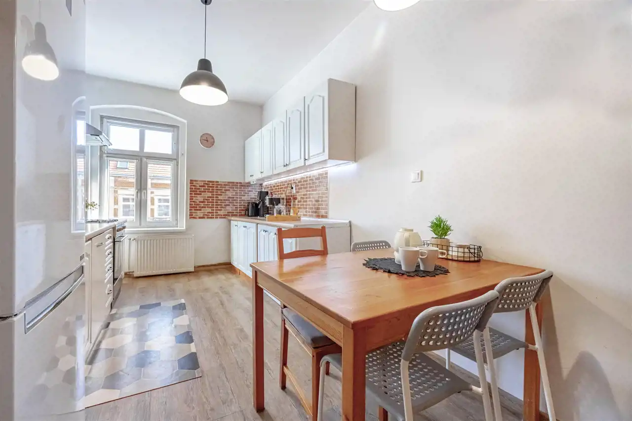 Budynek przy ulicy Trzebnickiej , niedaleko placu Św. Macieja, jednego z najbardziej klimatycznych punktów Nadodrza – kawiarnie, galerie, sklepy i ścieżki spacerowe sprawiają, że życie tu to prawdziwa przyjemność.