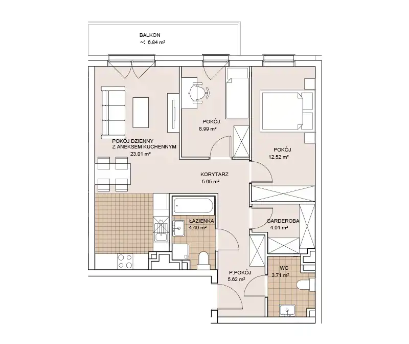 - Charakterystyka mieszkania 67.91 m2, 3 pokoje