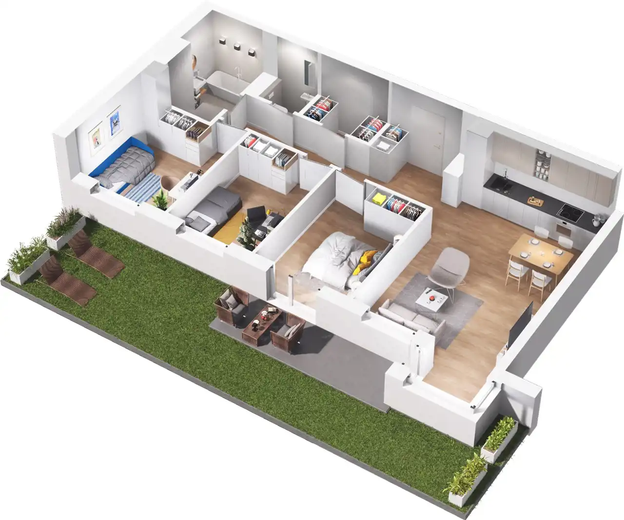 - z pokoju dziennego oraz jednej sypialni wyjście na ogród