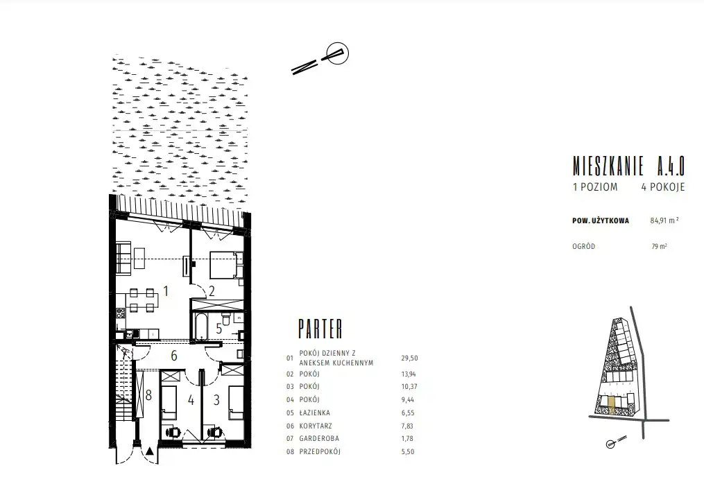 - Charakterystyka mieszkania 84.91 m2, 4 pokoje, do wykończenia