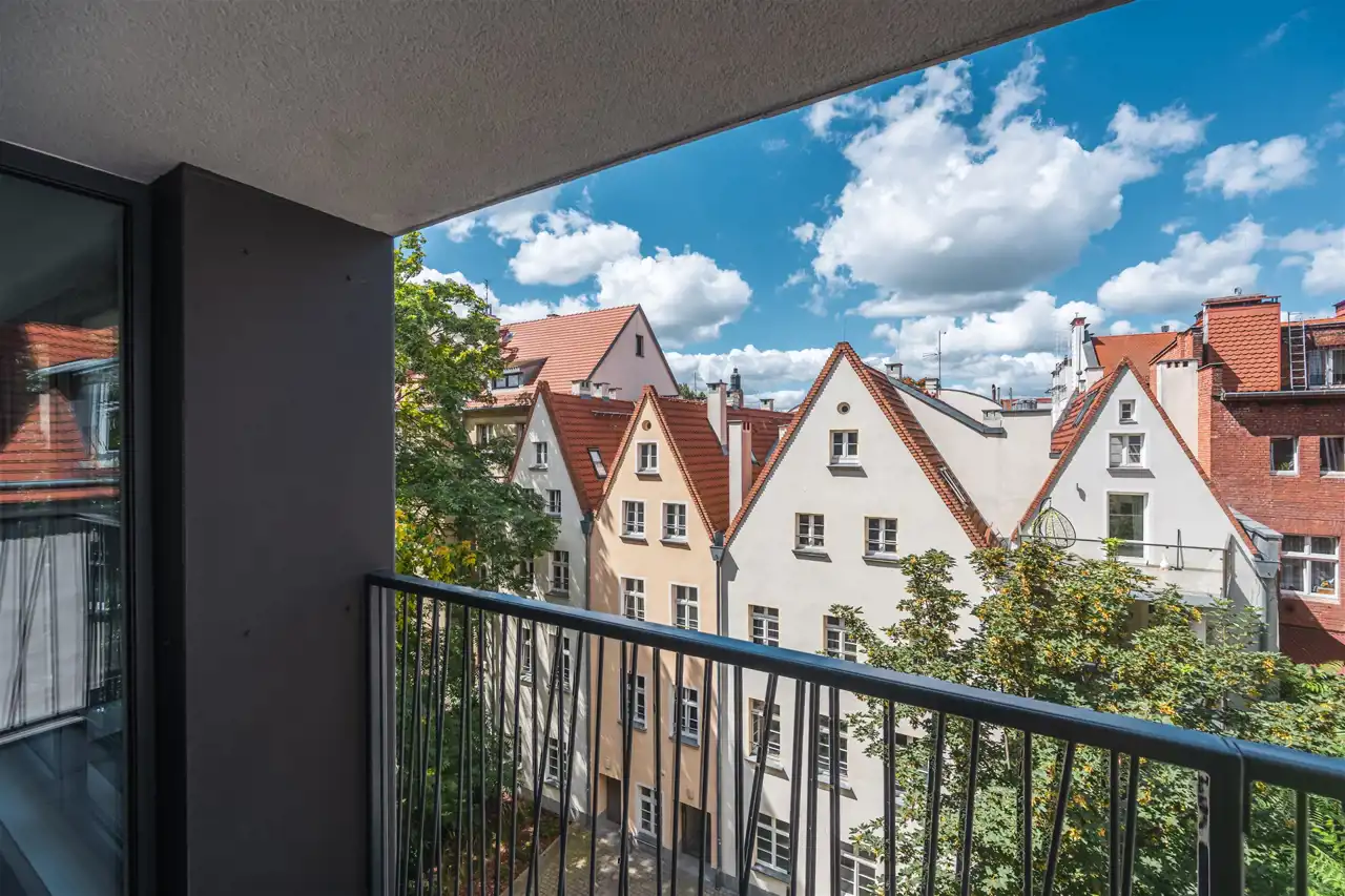 Nieruchomość usytuowana jest na 4. piętrze eleganckiej, 7-kondygnacyjnej kamienicy z 2020 roku z windą. Nowoczesna architektura z elementami stylu klasycznego doskonale wpisuje się w zabytkową zabudowę centrum Wrocławia. Budynek jest zadbany, z reprezentacyjnym wejściem i monitoringiem.
