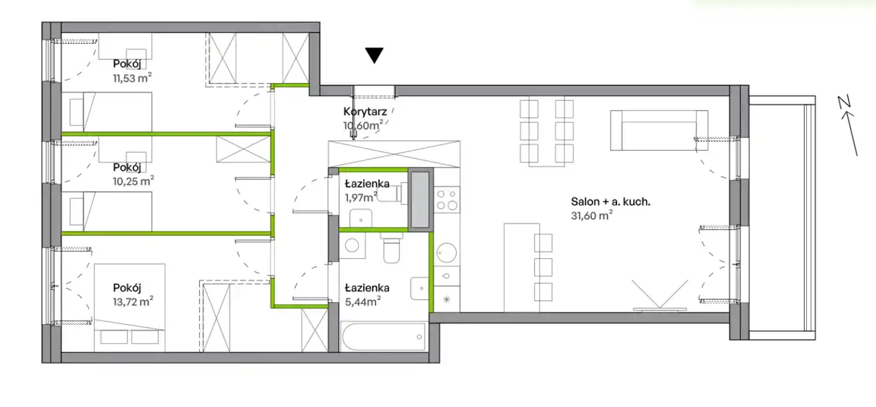 - Charakterystyka mieszkania 85.11 m2, 4 pokoje