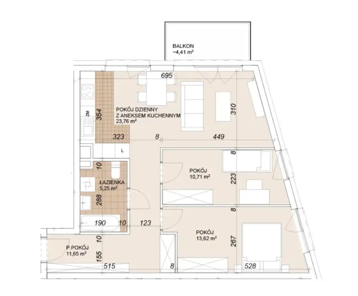 - Charakterystyka mieszkania 65 m2, 3 pokoje