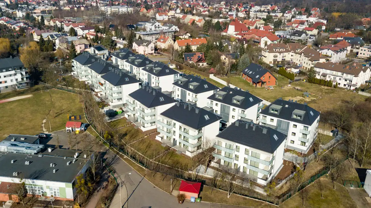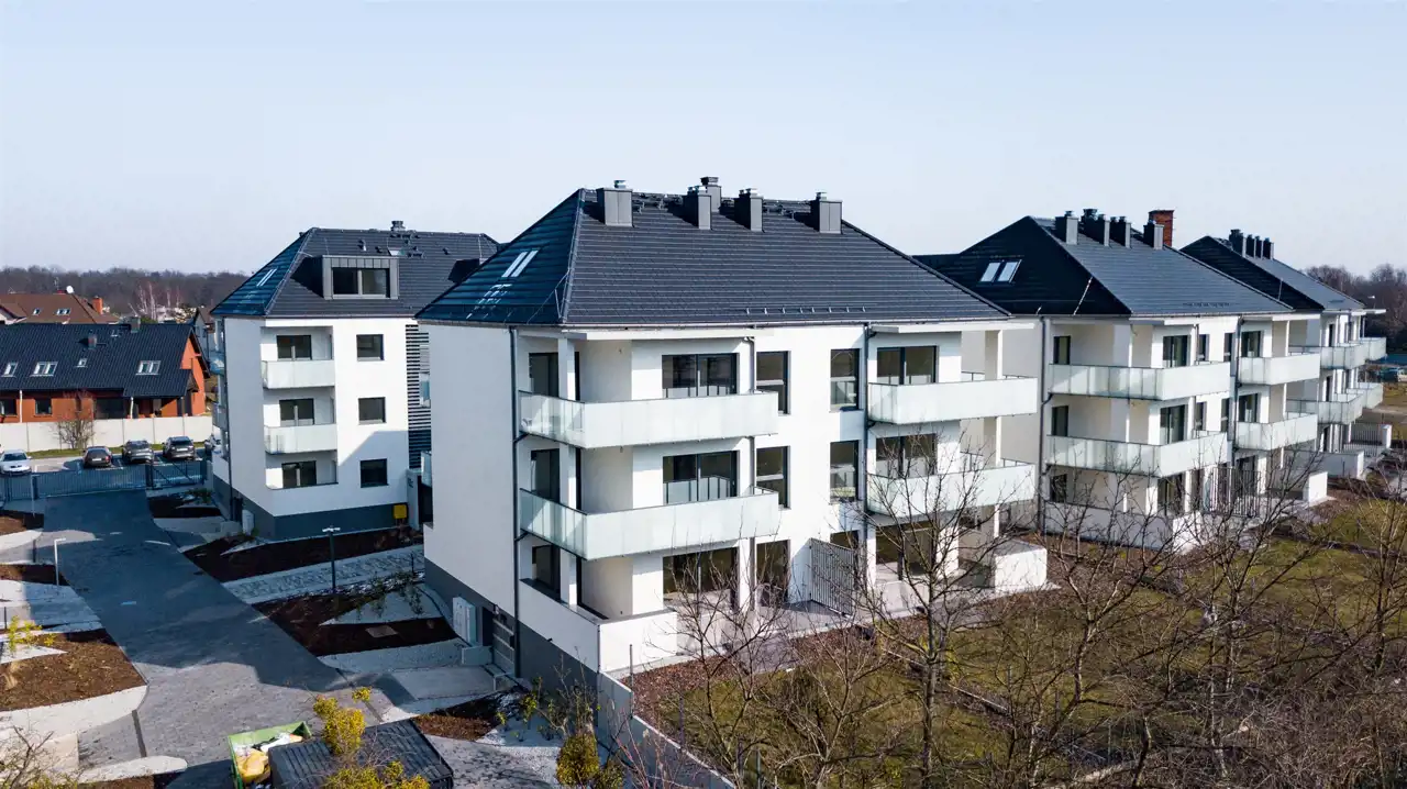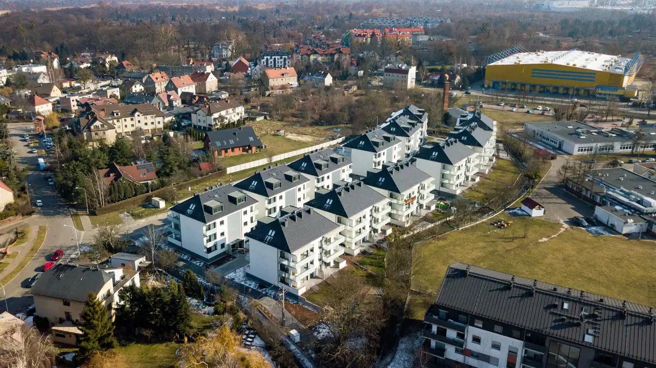 Mieszkanie znajduje się na nowoczesnym, ogrodzonym i monitorowanym osiedlu, złożonym z niskich, dwupiętrowych budynków, z windą i tylko dwoma mieszkaniami na piętrze. Na terenie osiedla znajduje się plac zabaw, strefa rekreacyjna, liczne nasadzenia oraz miejsca na rowery i wózki dziecięce. Całość zaprojektowana z myślą o komforcie i prywatności mieszkańców.