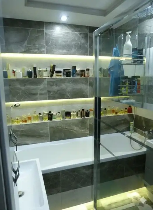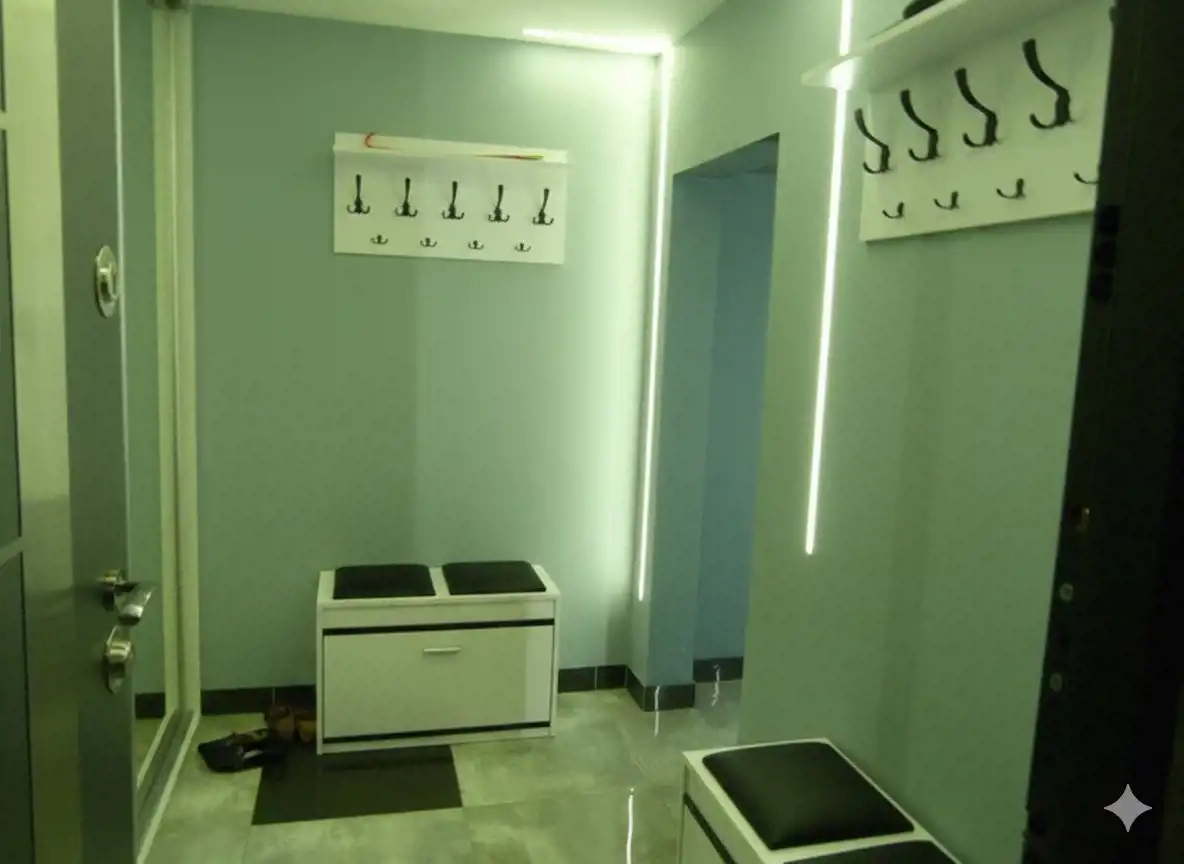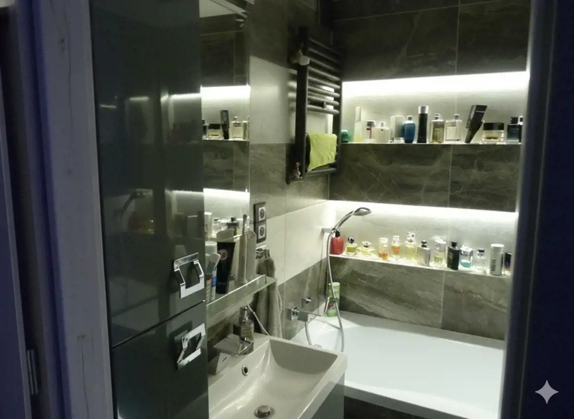 Nowoczesne Oświetlenie: W całym mieszkaniu zastosowano efektowne podświetlenia LED (widoczne m.in. w kuchni, przedpokoju i łazience), które podkreślają nowoczesny charakter wnętrza i tworzą przyjemny klimat.