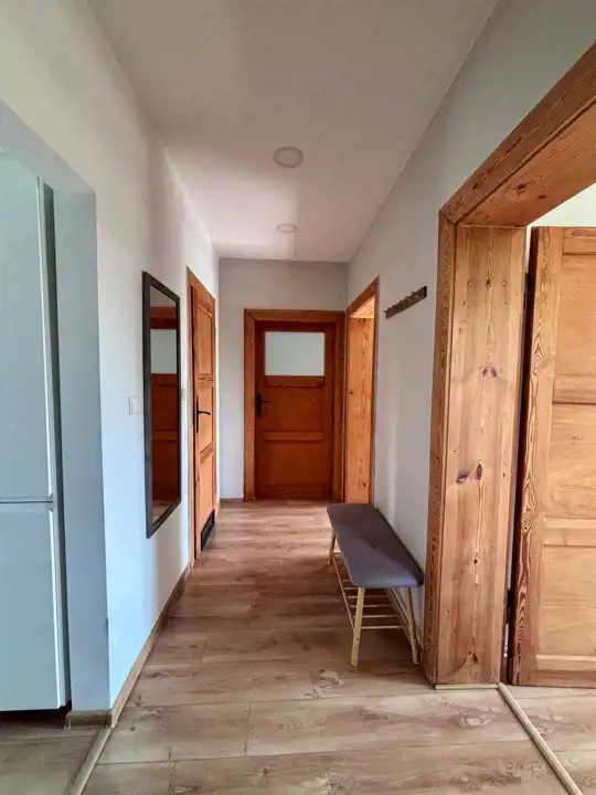 - Zachowany klimat: Oryginalne, drewniane drzwi i ościeżnice dodają wnętrzu niepowtarzalnego charakteru i ciepła.