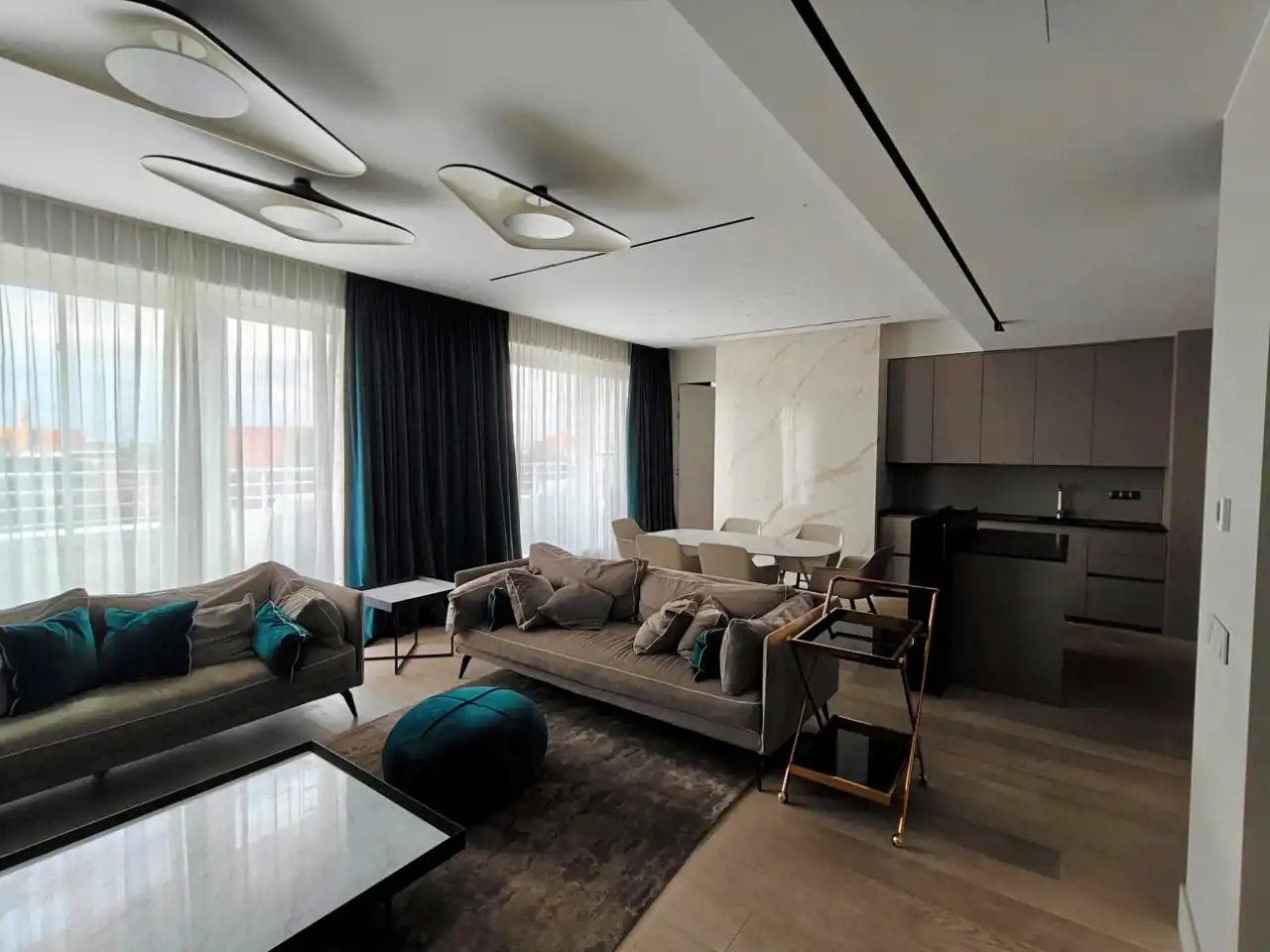 Do dyspozycji najemcy przestrzeń o powierzchni ok. 123m2 w skład której wchodzą: przestronny salon z aneksem kuchennym, trzy sypialnie, dwie eleganckie łazienki oraz duży taras z pięknym widokiem.
