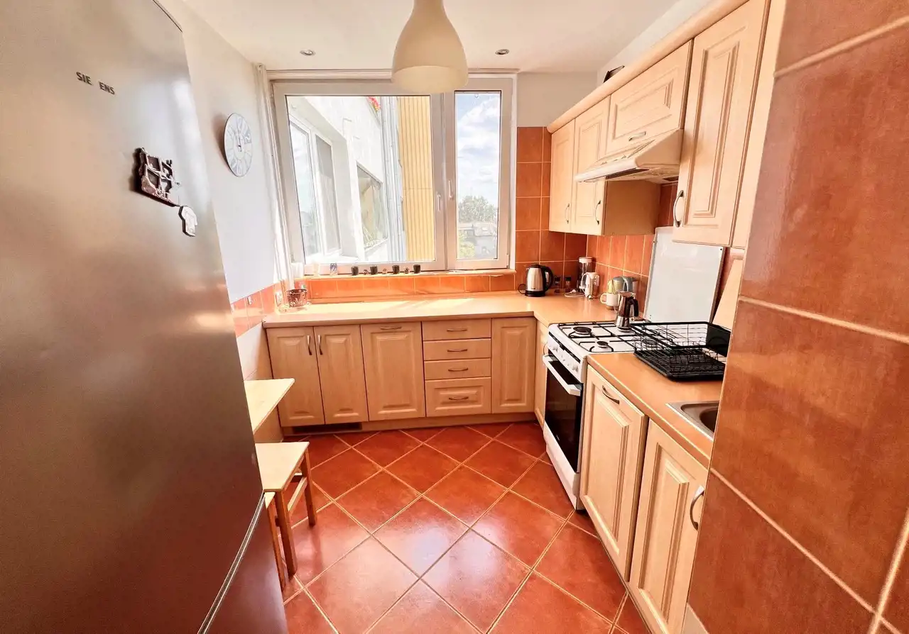Mieszkanie ma dwie łazienki, oddzielna kuchnię z oknem.