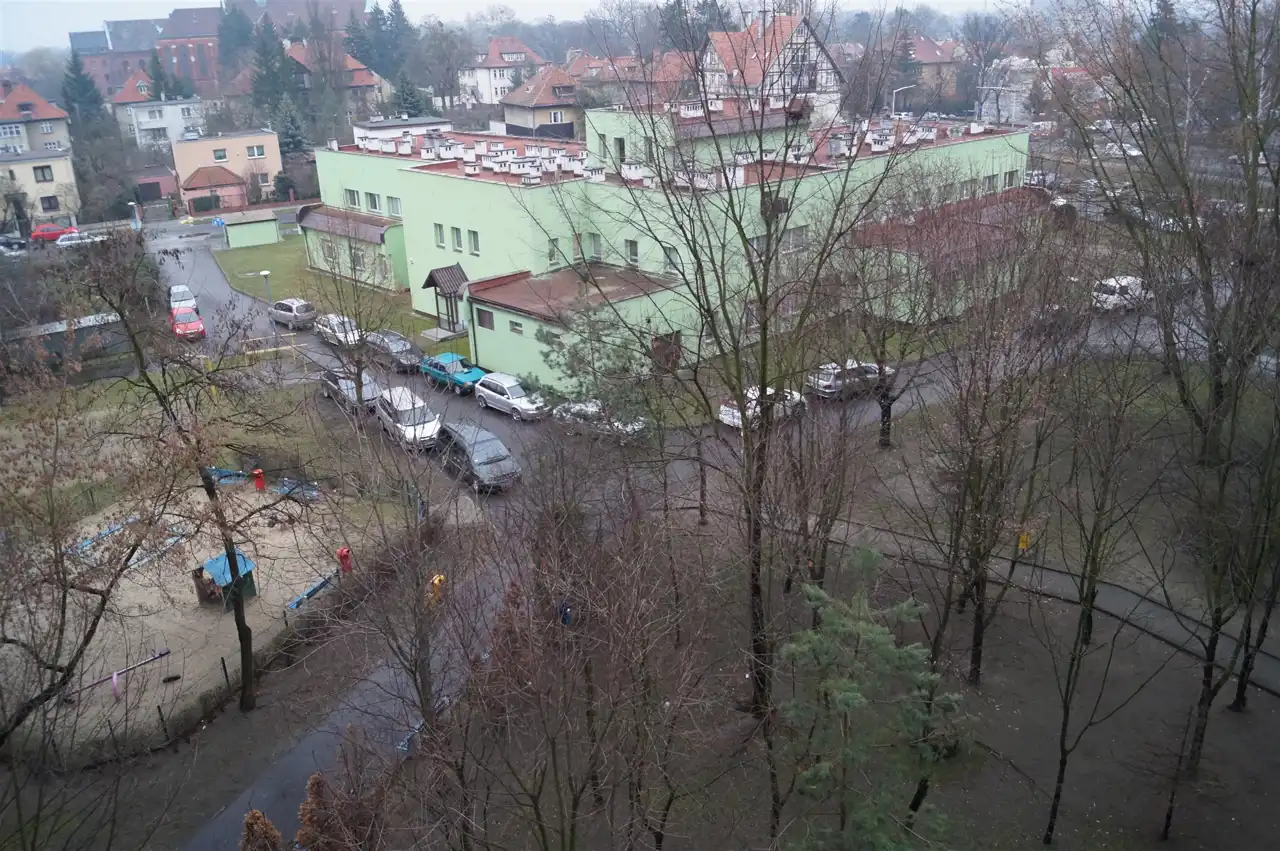 w 2 pokojowym mieszkaniu o powierzchni 50 m2 na 6 piętrze w budynku z windą przy ul. Rowerowej na Karłowicach.