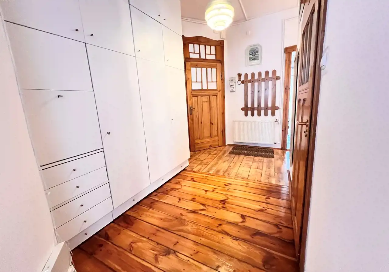 - przedpokój: pojemne szafy, wieszak na kurtki, szafki na buty.