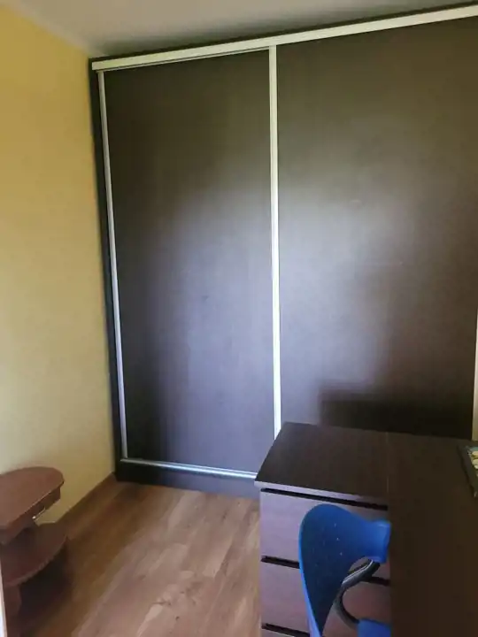 W przedpokoju, kuchni i łazience na podłogach kafle. W pokojach kanapa, łóżko małżeńskie, szafy, stolik z krzesłami, biurko.